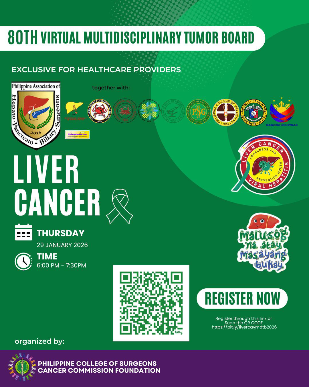We are inviting everyone to join us in this Liver Cancer Virtual Multidisciplinary Tumor Board on January 29, 2026, Thursday, 6-7:30 pm via Zoom platform.